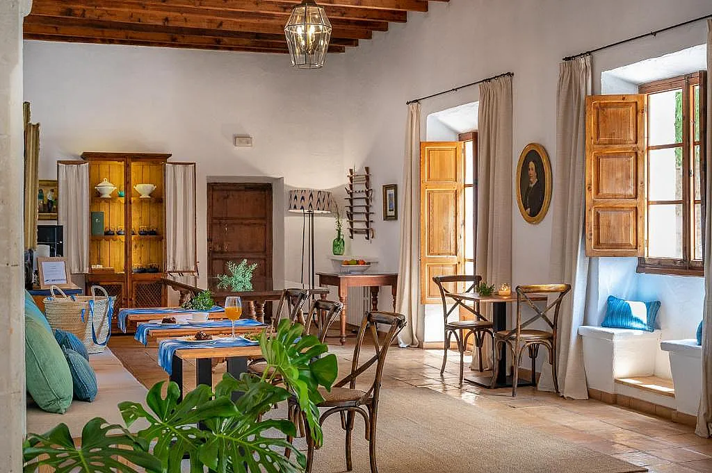 Los huéspedes pueden disfrutar de un desayuno buffet con productos frescos del huerto ecológico, que incluye frutas, verduras, mermeladas caseras y panes horneados diariamente. Son Siurana sigue funcionando como una explotación agrícola y ganadera, permitiendo a los visitantes conectarse con la vida rural.