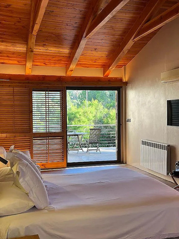 Cada habitación lleva el nombre de una flor, un detalle que se refleja en su decoración. Las junior suite y las suites con jardín incorporan terrazas amplias, y la suite con chimenea ofrece vistas panorámicas al Pirineo.