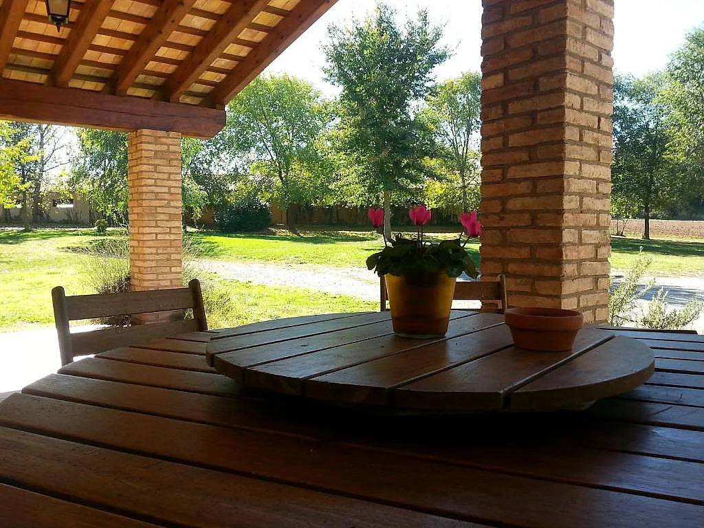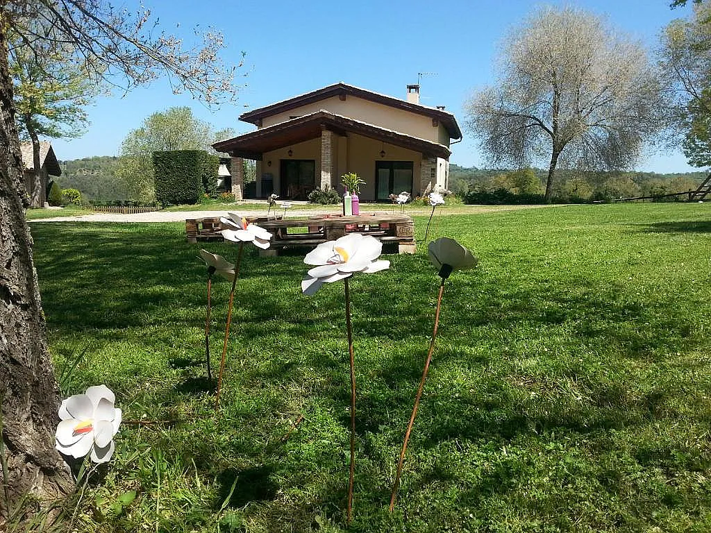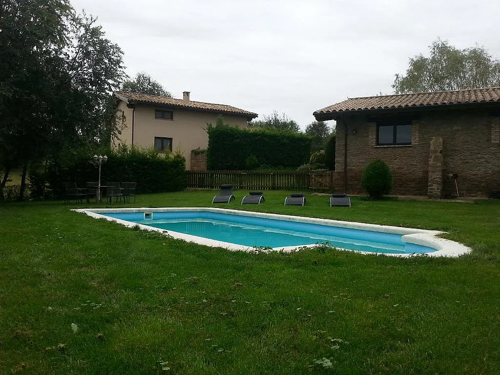 En el exterior, la casa ofrece una gran zona verde donde los huéspedes pueden relajarse y disfrutar de la inmensidad del paisaje. Además, cuenta con una piscina para los días más calurosos y una barbacoa en un delicioso porche con muebles de jardín, desde donde se pueden contemplar excelentes vistas de los Pirineos. Este entorno es ideal para disfrutar de parrilladas al aire libre y pasar tiempo de calidad con familiares y amigos.