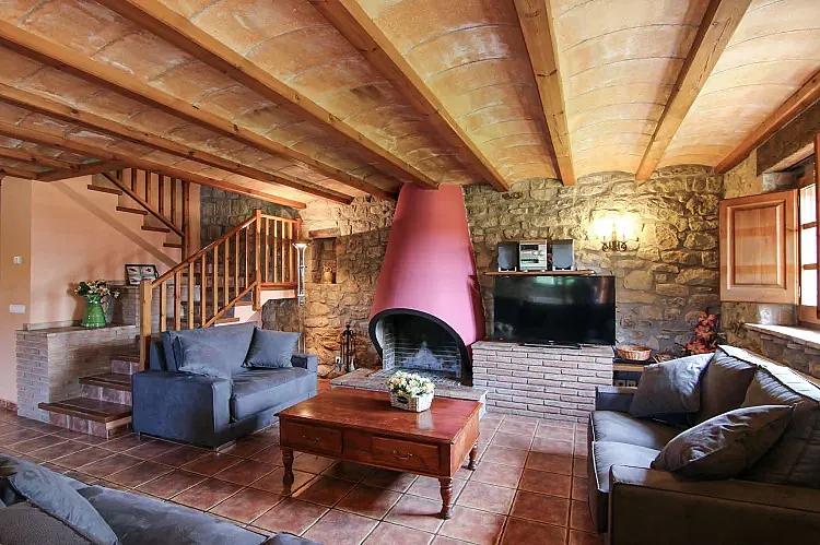 Con capacidad para 20 personas, Cal Cosme cuenta con 8 habitaciones, todas con baño privado. La casa dispone de dos salones, uno de ellos con chimenea, y un comedor, ofreciendo un espacio amplio y acogedor para sus huéspedes. La cocina está completamente equipada con dos neveras, microondas, lavaplatos, horno eléctrico, vitrocerámica y lavadora, garantizando una estancia cómoda y práctica. Además, la casa cuenta con calefacción y conexión Wi-Fi.