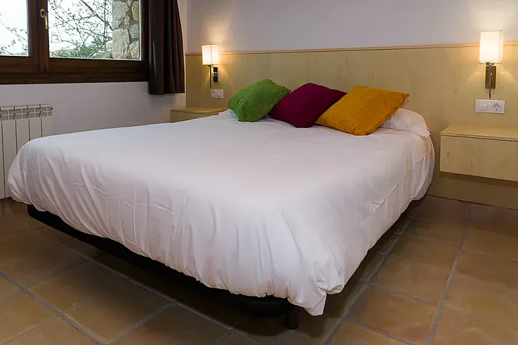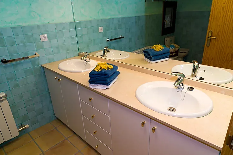 La zona de descanso se organiza en 4 dormitorios: 3 matrimoniales con lencería incluida y un cuarto con litera y cama matrimonial, ideal para familias. La casa dispone de 2 baños con ducha y todos los sanitarios necesarios, distribuidos para facilitar el uso en grupo.