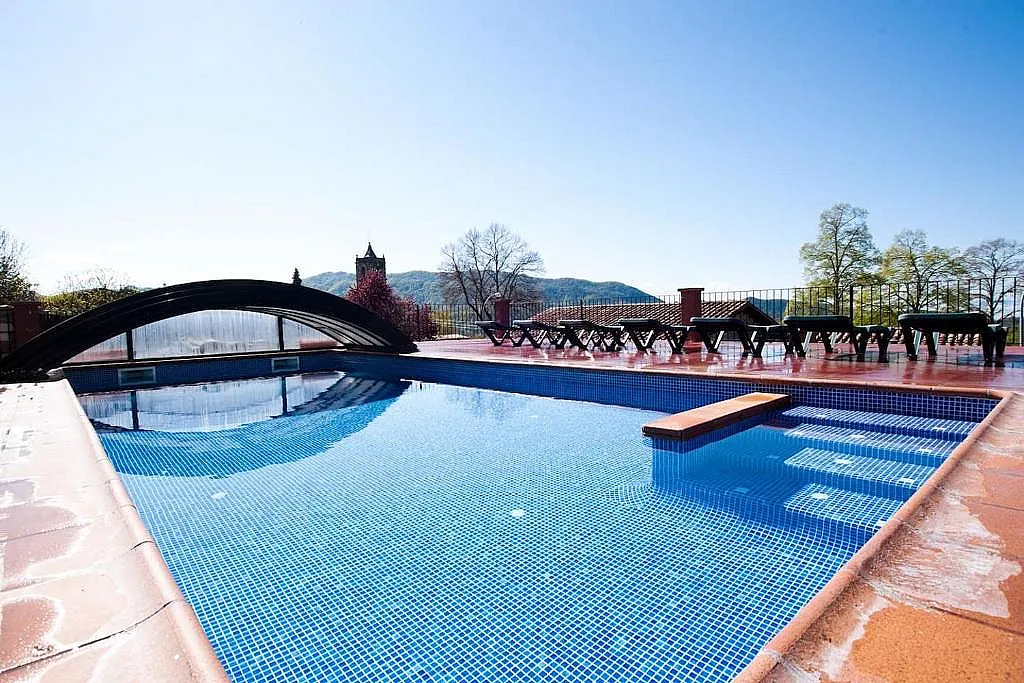 El exterior es uno de los puntos fuertes de Can Cisquet. Un amplio jardín de 1200 m² con porche, barbacoa y una piscina cerrada y cubierta con techo retráctil permite disfrutar del espacio al aire libre en cualquier época del año. Además, la terraza solárium es ideal para relajarse bajo el sol.