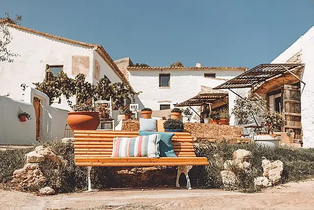 Can Ramonet es una masia indiana del siglo XVII en pleno parque natural del Garraf. Se trata de una masia singular por su peculiar distribución. En cuanto entras te parece estar en un pequeño pueblo ibicenco rodeado de vinyas y campo.
