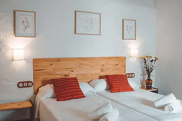 Situada en el segundo piso de la casa grande, Ca la Mei es una casa con acceso independiente, con dos habitaciones dobles y baño completo privado con ducha con hidromasaje.