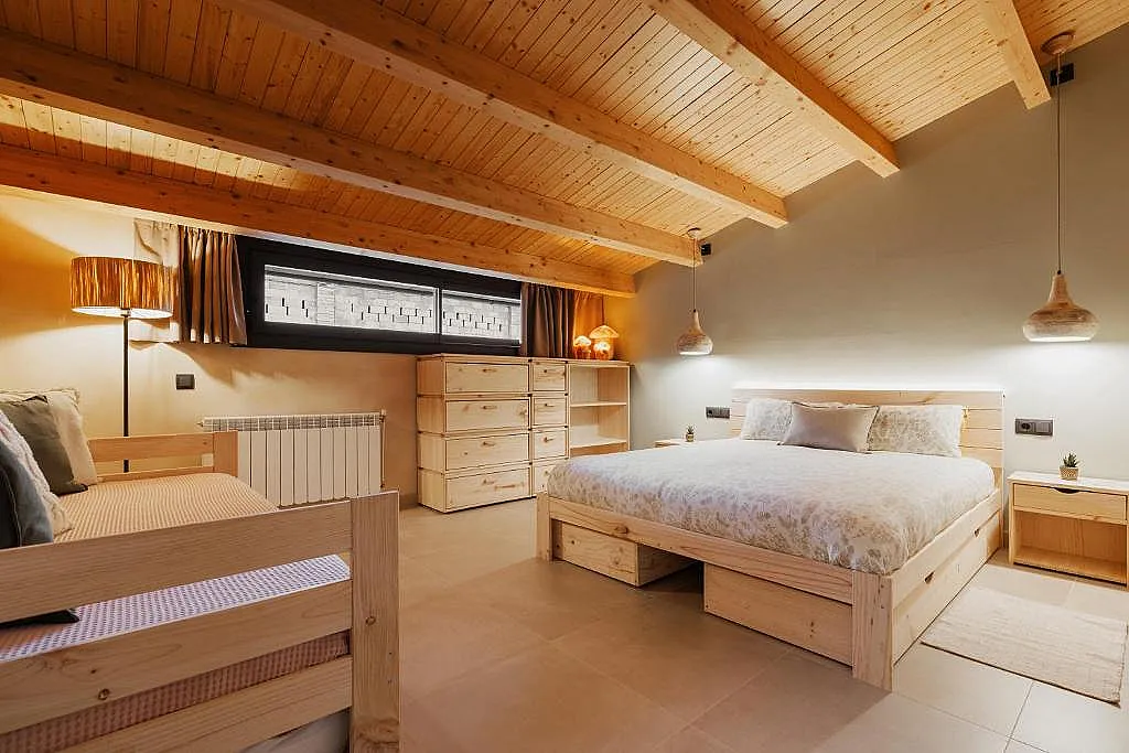 La casa dispone de dos habitaciones dobles, un baño, cocina-comedor y sala de estar. Está equipada con chimenea, cocina totalmente equipada, sábanas, toallas, secador, calefacción, lavadora y televisión. Para el ocio, hay una zona de juegos infantil, juegos de mesa, piscina, barbacoa, mesa de ping-pong y canasta de baloncesto. Además, la casa es accesible para personas con discapacidad.