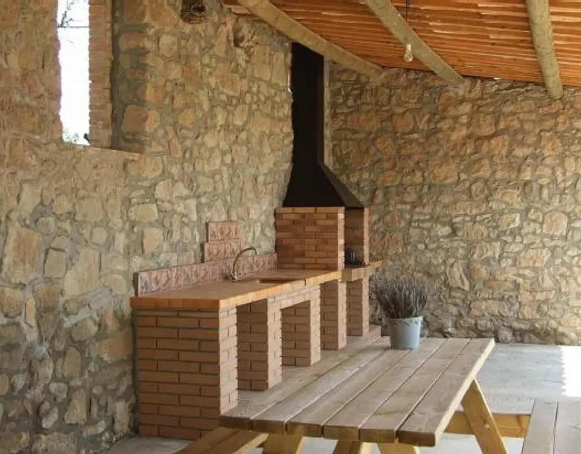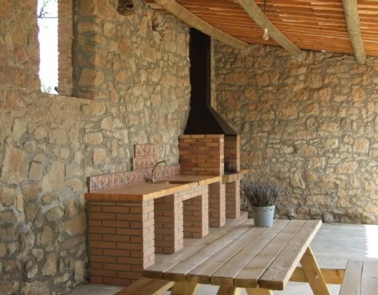 La casa cuenta con una cocina totalmente equipada, un comedor y una sala de estar, así como 2 baños. Los huéspedes podrán disfrutar del amplio jardín que rodea la casa, que incluye una zona de barbacoa y una piscina, perfecta para relajarse y disfrutar del buen tiempo en un entorno natural.
