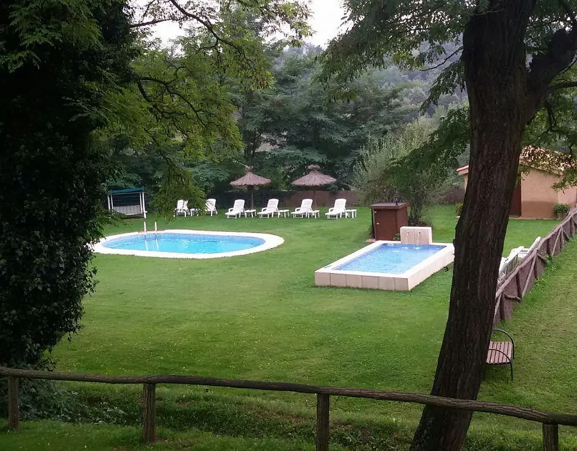 La zona de baño incluye dos piscinas, una para adultos y otra para niños, con tumbonas, sillones, un cuarto de baño y vestidor exterior. La Teuleria también cuenta con un gallinero, donde los huéspedes pueden recoger los huevos frescos de las gallinas durante su estancia.
