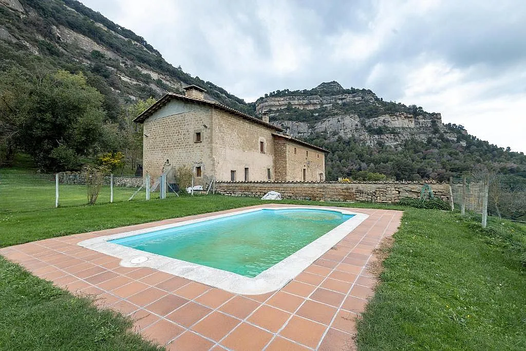 En el exterior, los huéspedes pueden disfrutar de una piscina con valla de seguridad, tumbonas y una barbacoa ideal para los días soleados. Además, la masía dispone de juegos para los más pequeños, lo que la convierte en una opción ideal para familias.