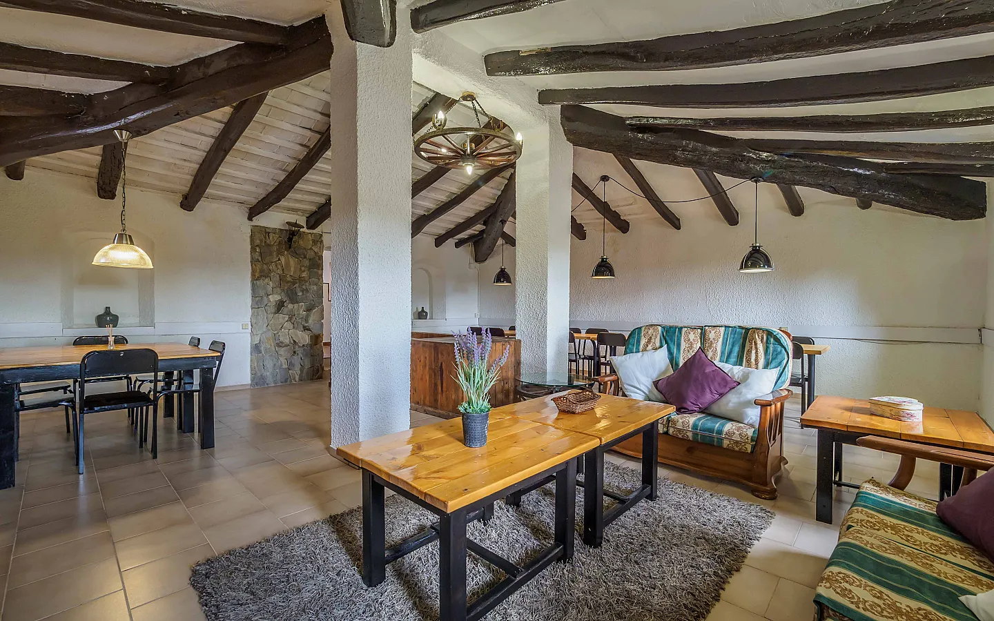 La masía ha sido decorada en estilo rústico lo que la hace verdaderamente única. Dispone de un salón principal, una cocina-comedor completamente equipada, un salón en la segunda planta en el que podrá realizar innumerables actividades por su disposición y comodidad. En la misma planta encontramos los dormitorios compuestos por 4 dobles y 1 habitación infantil con literas, todas decoradas con encanto y estilo propio.