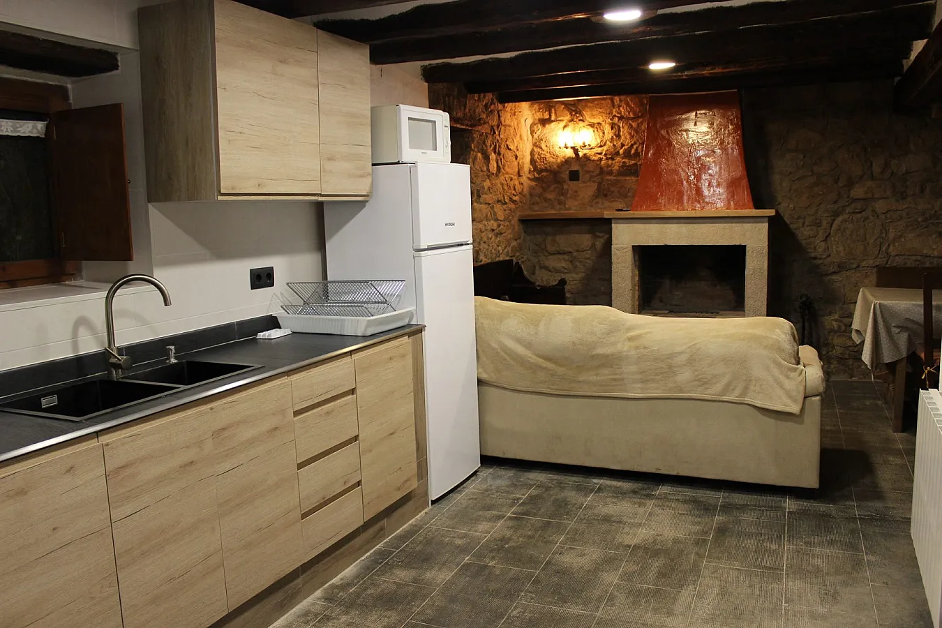 Con capacidad para 9 personas, la casa cuenta en la planta baja con una cocina equipada, un comedor-salón con chimenea, una habitación y un baño. También dispone de un porche con barbacoa, ideal para comidas al aire libre. En la primera planta, hay cuatro habitaciones, un baño y acceso a las golfas, ofreciendo un espacio amplio y cómodo para todos los huéspedes.