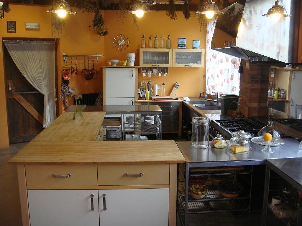 La cocina del Molí del Casó es de temporada y utiliza productos del huerto ecológico y hierbas del herbario. Además, la cocina está adaptada para vegetarianos, celíacos y otros requerimientos dietéticos. El comedor y la cocina forman un espacio iluminado y acogedor, integrado en el entorno.