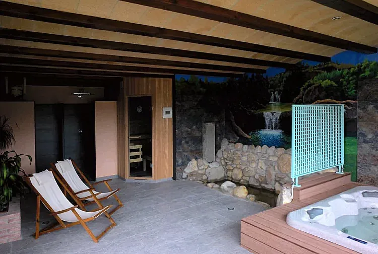 mbas casas comparten un amplio espacio exterior ajardinado con una zona infantil y un campo de césped polivalente para actividades deportivas. Salt del Colom ofrece una experiencia única y relajante, con opciones como una zona wellness, estanque de agua natural apto para el baño y la oportunidad de visitar a los animales de la finca