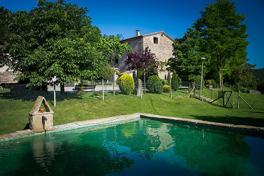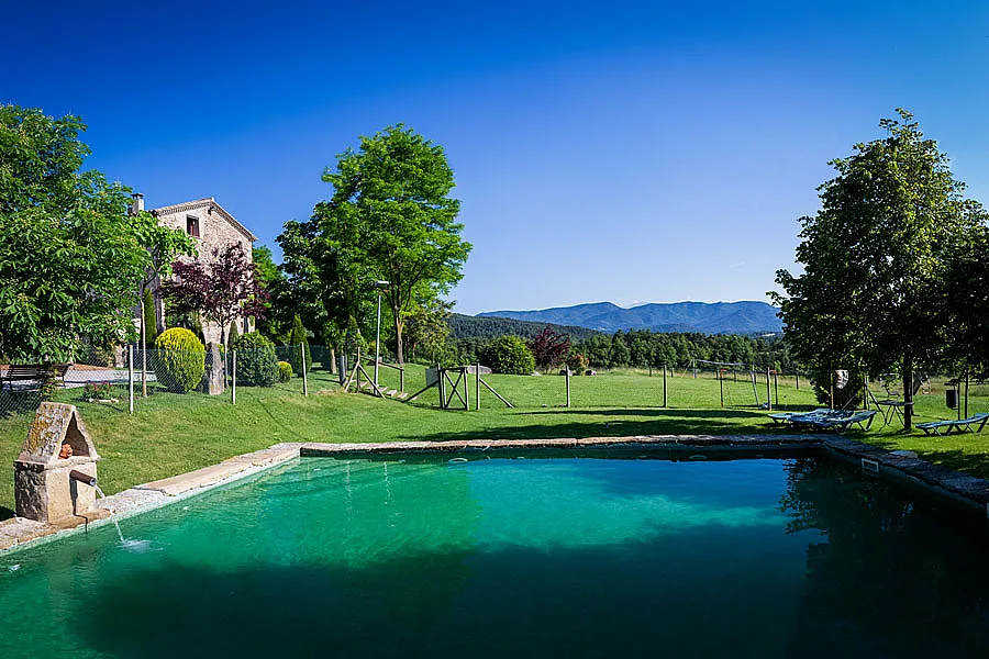 Los espacios comunes de la masía incluyen una piscina, campo de fútbol y zona infantil. La ubicación de Las Vinyes Grosses es inmejorable, a 100 km de Barcelona y 25 km de Vic, y a solo una hora de las pistas de esquí de la Molina y media hora de la estación del tren cremallera para ir a Núria.