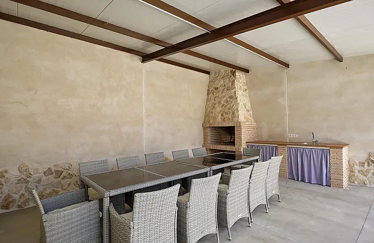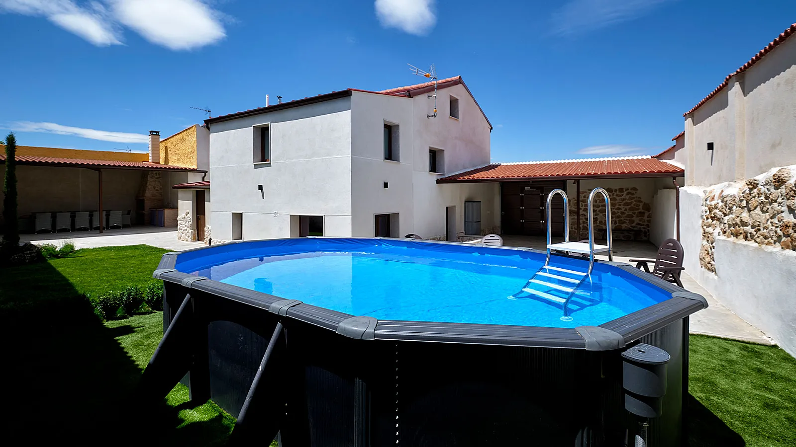 El exterior está pensado para disfrutar del tiempo libre: jardín con porche, barbacoa y una piscina refrescante ideal para el verano. Es un entorno perfecto para reuniones tranquilas.