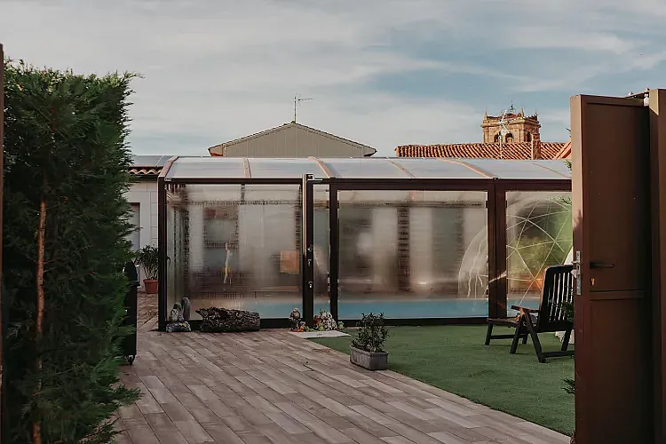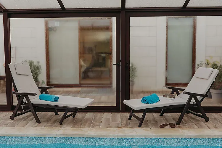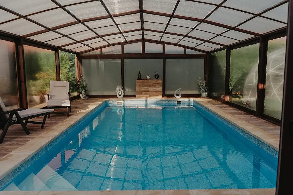En el exterior, el alojamiento destaca por su piscina cubierta climatizada de uso privado, un espacio ideal para relajarse en cualquier época del año. Dispone además de terraza cubierta, jardín, barbacoa y zona de aparcamiento.