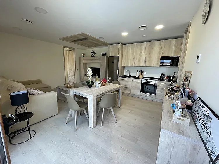 El interior cuenta con 2 habitaciones equipadas con televisión, 2 baños privados, comedor también con televisión, acceso a Internet, cocina completa y sistema de climatización con aire acondicionado y calefacción.