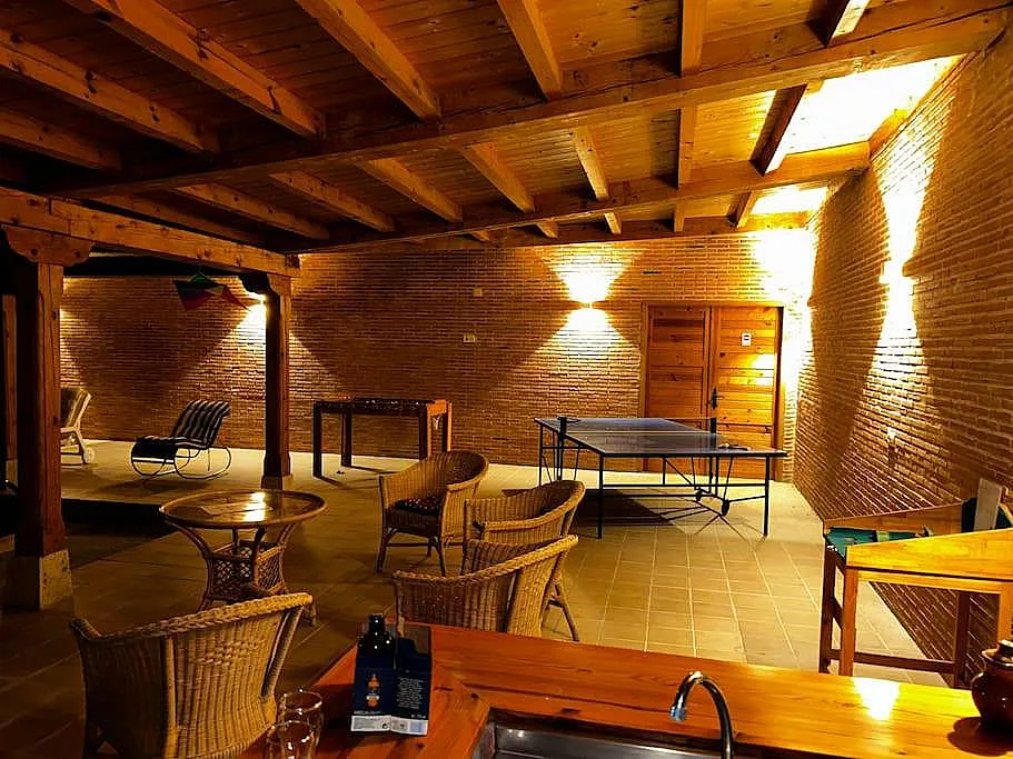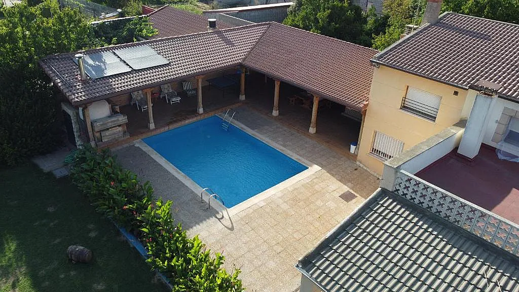 El jardín es amplio, con piscina y mobiliario de exterior, lo que permite disfrutar del buen tiempo en un entorno agradable. Viñas y Nogales es ideal para familias o grupos de amigos que buscan comodidad, privacidad y un ambiente acogedor