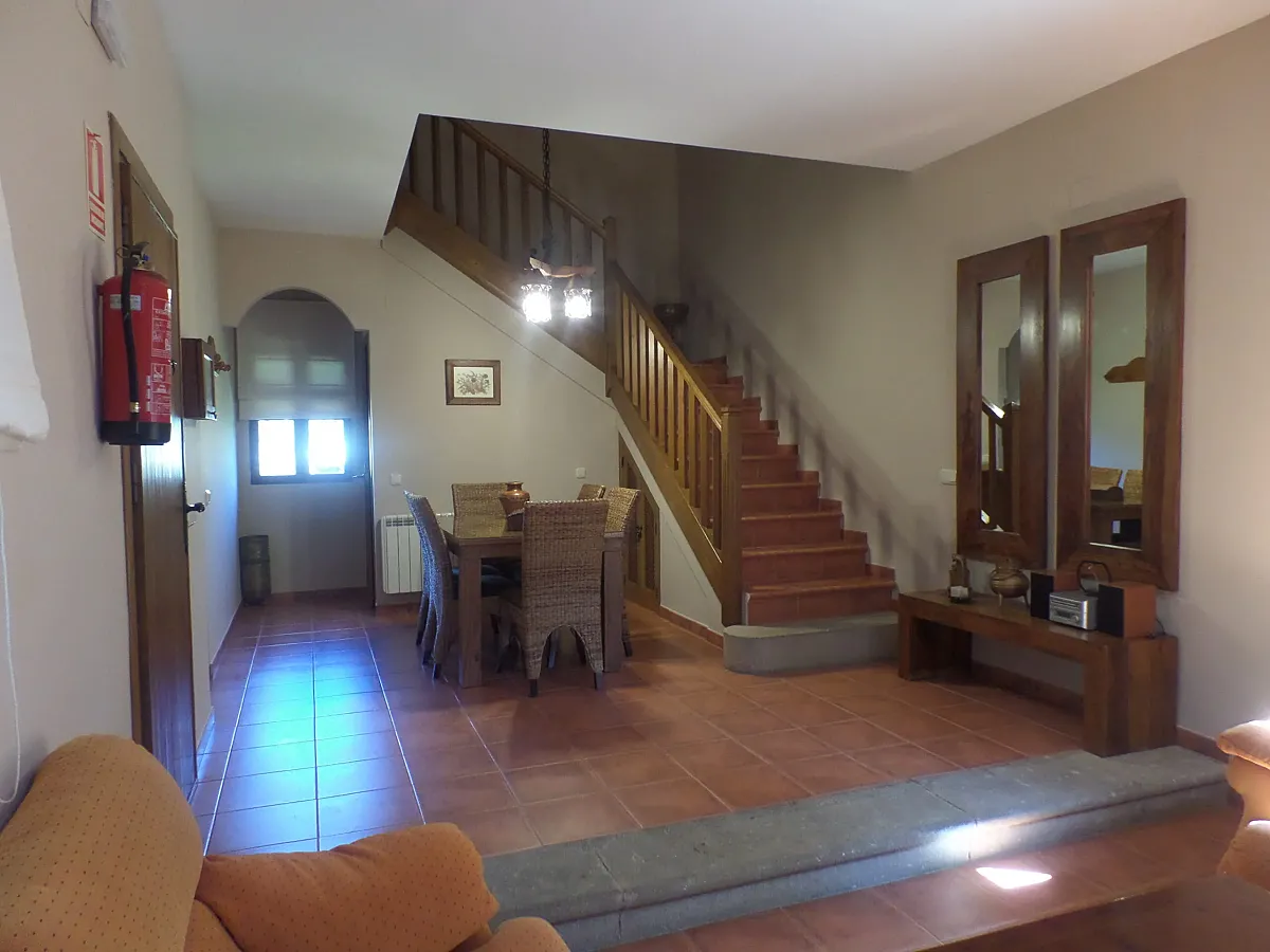 Consta de 2 plantas con un total de 160 M2, accediendo a la misma a través de un porche de piedra acristalado, equipado con mobiliario de terraza desde planta baja, el salón de 30 M2. con chimenea y equipado para una estancia cómoda y confortable, la cocina decorada a estilo rústico dispone de Vitro-cerámica, lavadora, lavavajillas, horno-microondas, etc. y se completa esta planta con un pequeño aseo.