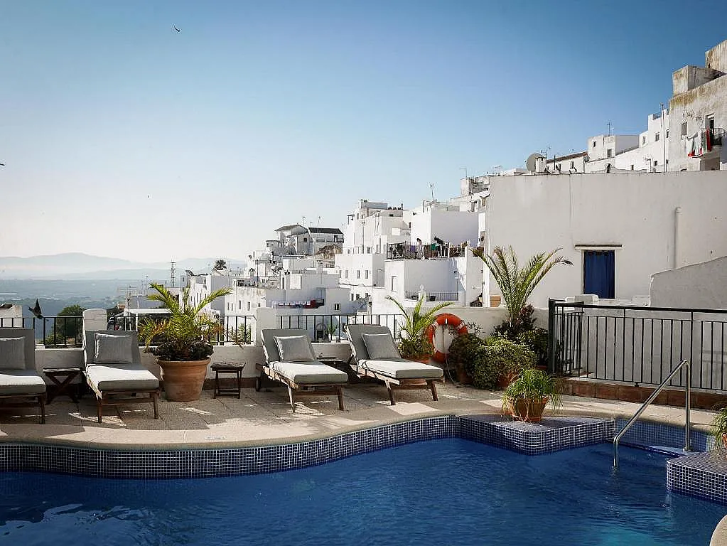 El edificio tiene un marcado estilo colonial y está distribuido en 3 niveles, una organización que aporta más intimidad al conjunto. Desde las habitaciones y las terrazas se disfrutan vistas panorámicas, un detalle que suma mucho a la estancia en un lugar como Vejer. El patio de origen árabe, datado en el siglo XIV, es uno de los elementos más reconocibles del hotel y aporta carácter a todo el alojamiento.