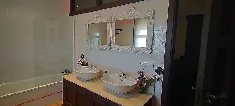 El exterior de Casa Rural La Carpintería es igualmente atractivo. Una gran piscina con ducha, una zona verde con barbacoa de piedra y dos porches, uno delantero y otro trasero, permiten disfrutar del aire libre en un entorno tranquilo. La casa está ubicada a orillas del río Bullaque, en el entorno del Parque Nacional de Cabañeros, ofreciendo un sinfín de posibilidades para actividades al aire libre.