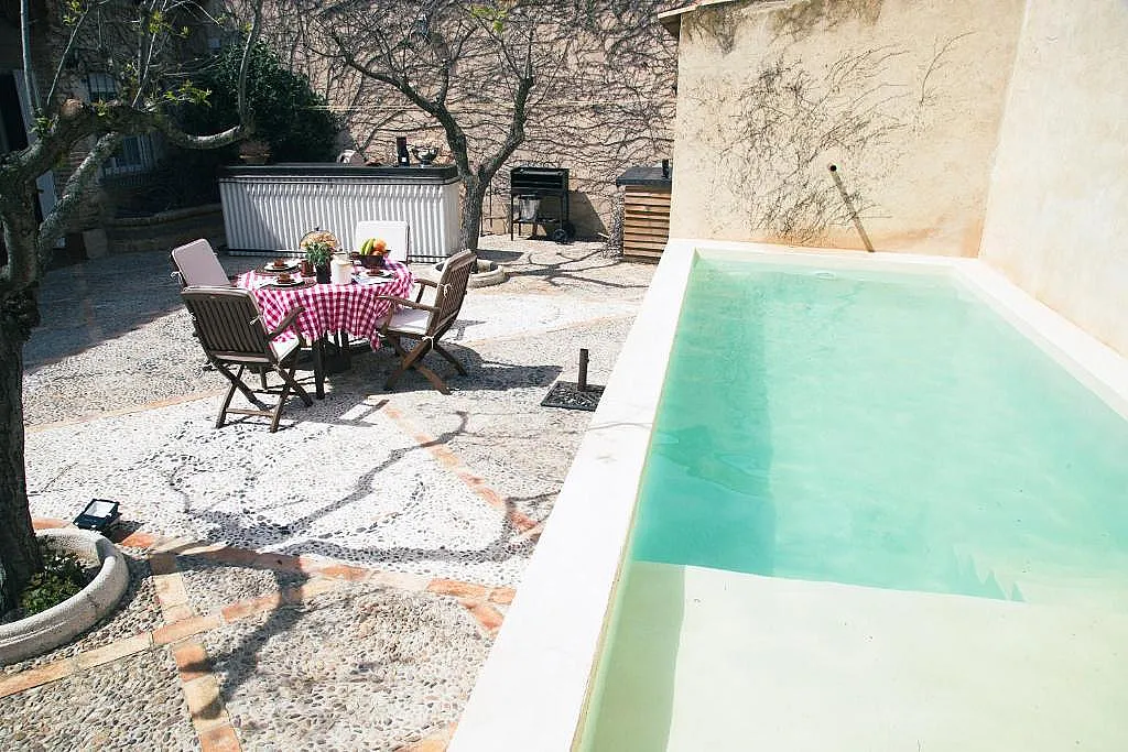 Las zonas comunes incluyen un salón con chimenea, un comedor y una cocina totalmente equipada. En el exterior se encuentra la terraza con barra de bar, piscina climatizada, ducha y aseo, además de una barbacoa para disfrutar de comidas al aire libre.