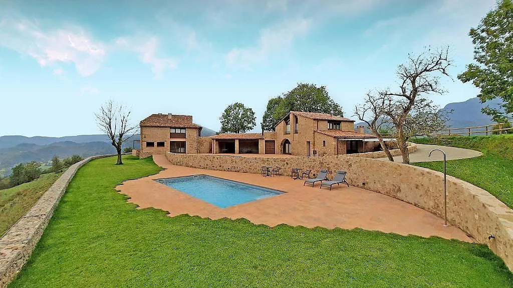 Entre las zonas comunes destaca la piscina, el porche con barbacoa y el entorno natural que rodea la finca.