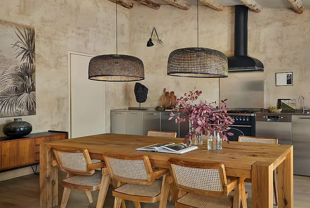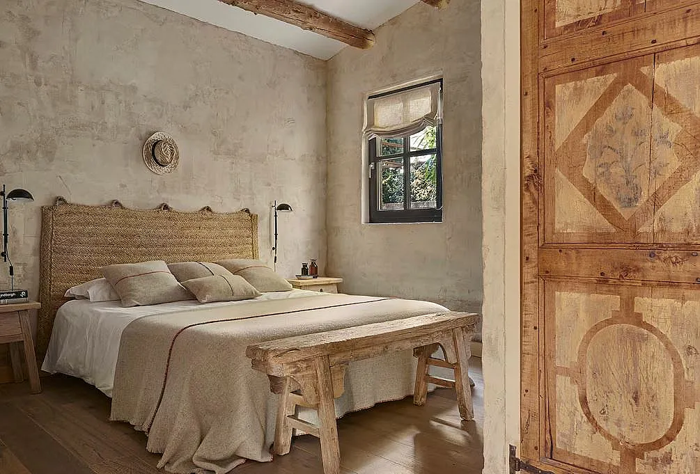 Cada edificio tiene su propia personalidad. La casa principal apuesta por una decoración detallista y serena; la casa de la piscina incorpora inspiración marroquí con estuco y materiales naturales; la casa de invitados destaca por su trabajo artesanal; y el estudio ofrece un ambiente más íntimo y luminoso.