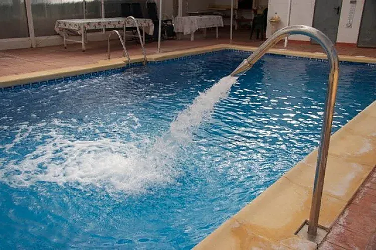 Dispone de área ajardinada con barbacoa y piscina cubierta.