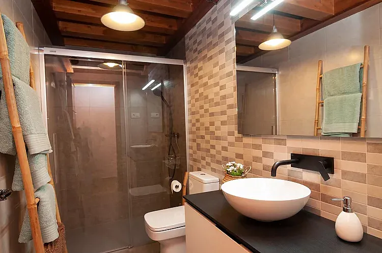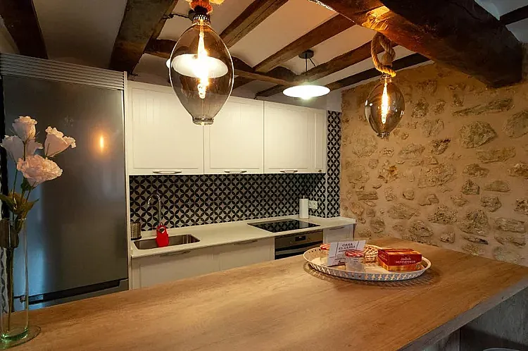 Consta de 7 habitaciones, 5 baños y 2 cocinas-comedor totalmente equipadas con nevera/congelador, lavadora, lavavajillas, microondas, horno, cocina de inducción, batidora, tostadora, exprimidor eléctrico, plancha para ropa, cafetera italiana y menaje completo. Distribuidas en 3 plantas. Dispone de Internet, calefacción, cocinas completamente equipadas...