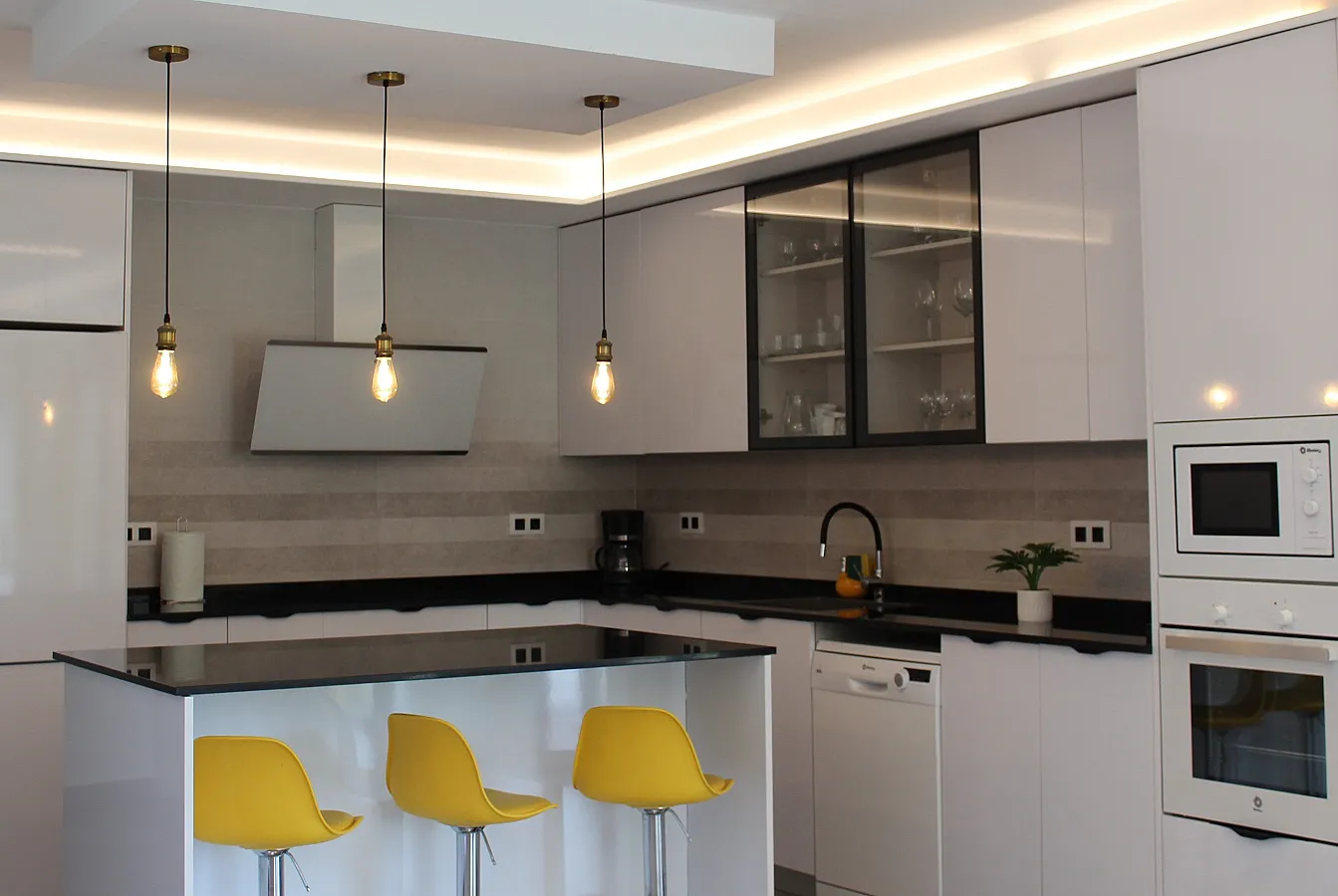 El amplio salón con comedor y la cocina totalmente equipada forman el corazón de la vivienda, pensada para la convivencia en grupo. Algunas habitaciones tienen balcón con espectaculares vistas a la montaña.