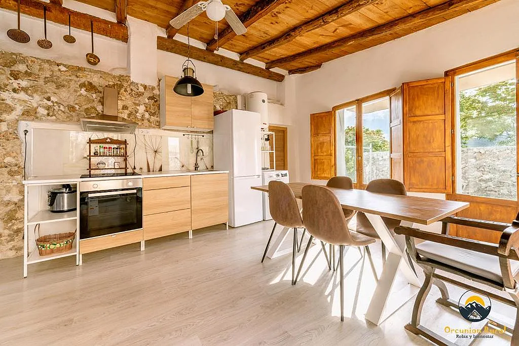En la planta baja se encuentra otra habitación con jacuzzi en suite, además del salón principal con estufa de leña y un sofá cama adicional, y una cocina-comedor amplia equipada para grupos.