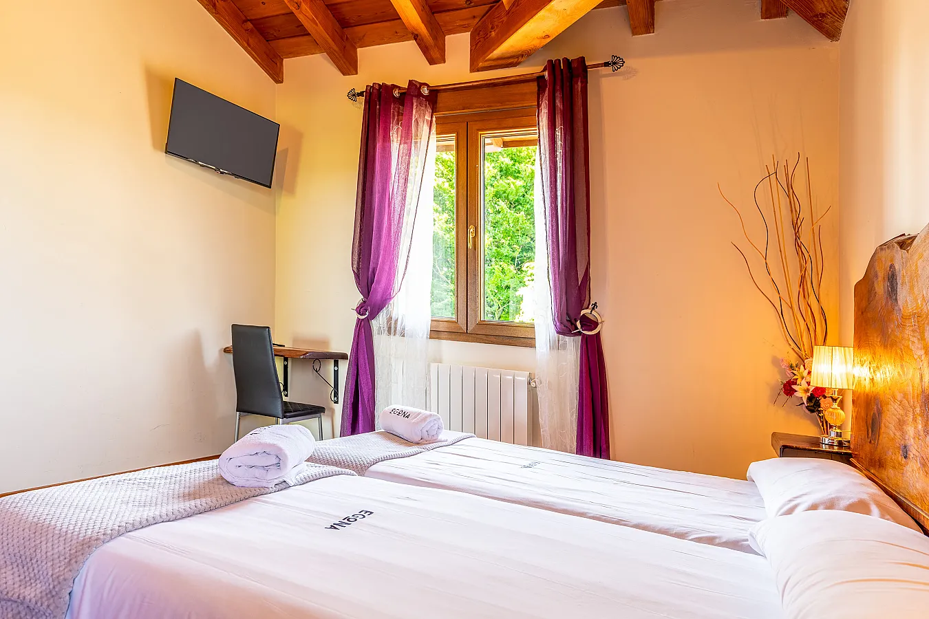 Izetaerdi es un auténtico agroturismo gestionado por Egona, donde la familia propietaria vive en la vivienda anexa (cada hogar es totalmente independiente).