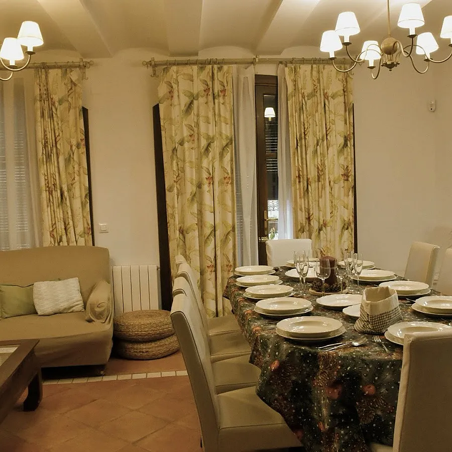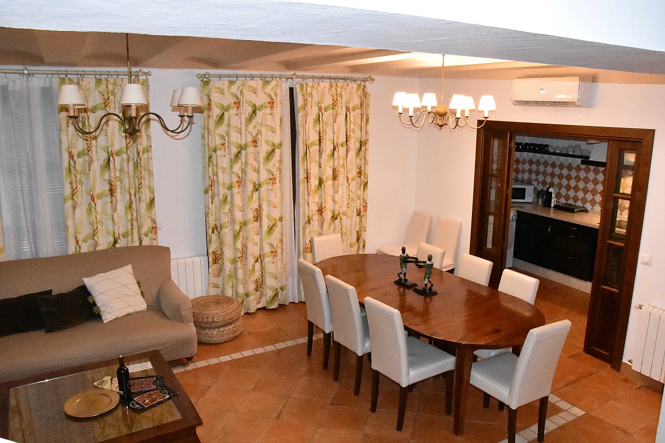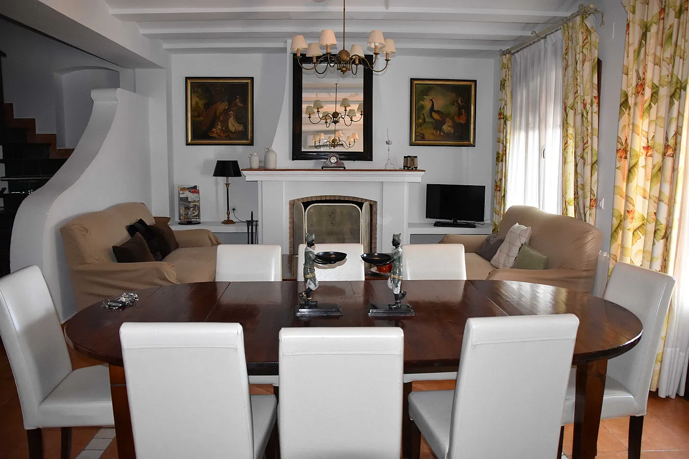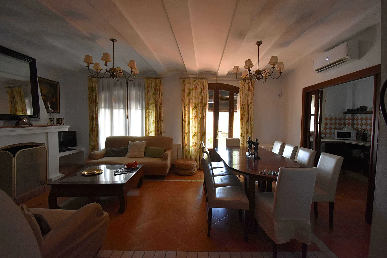 El salón principal es amplio y dispone de chimenea, creando un ambiente cálido y acogedor para reuniones familiares o de amigos.