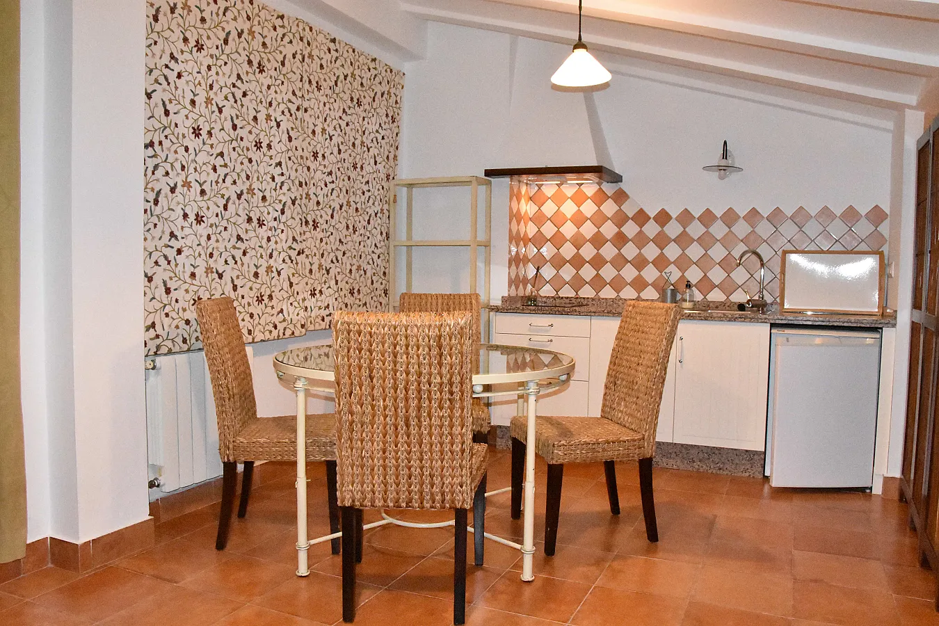 En la planta alta, Casa El Marqués de Robledal cuenta con un apartamento decorado con esmero, perfecto para aquellos que buscan un espacio más íntimo.