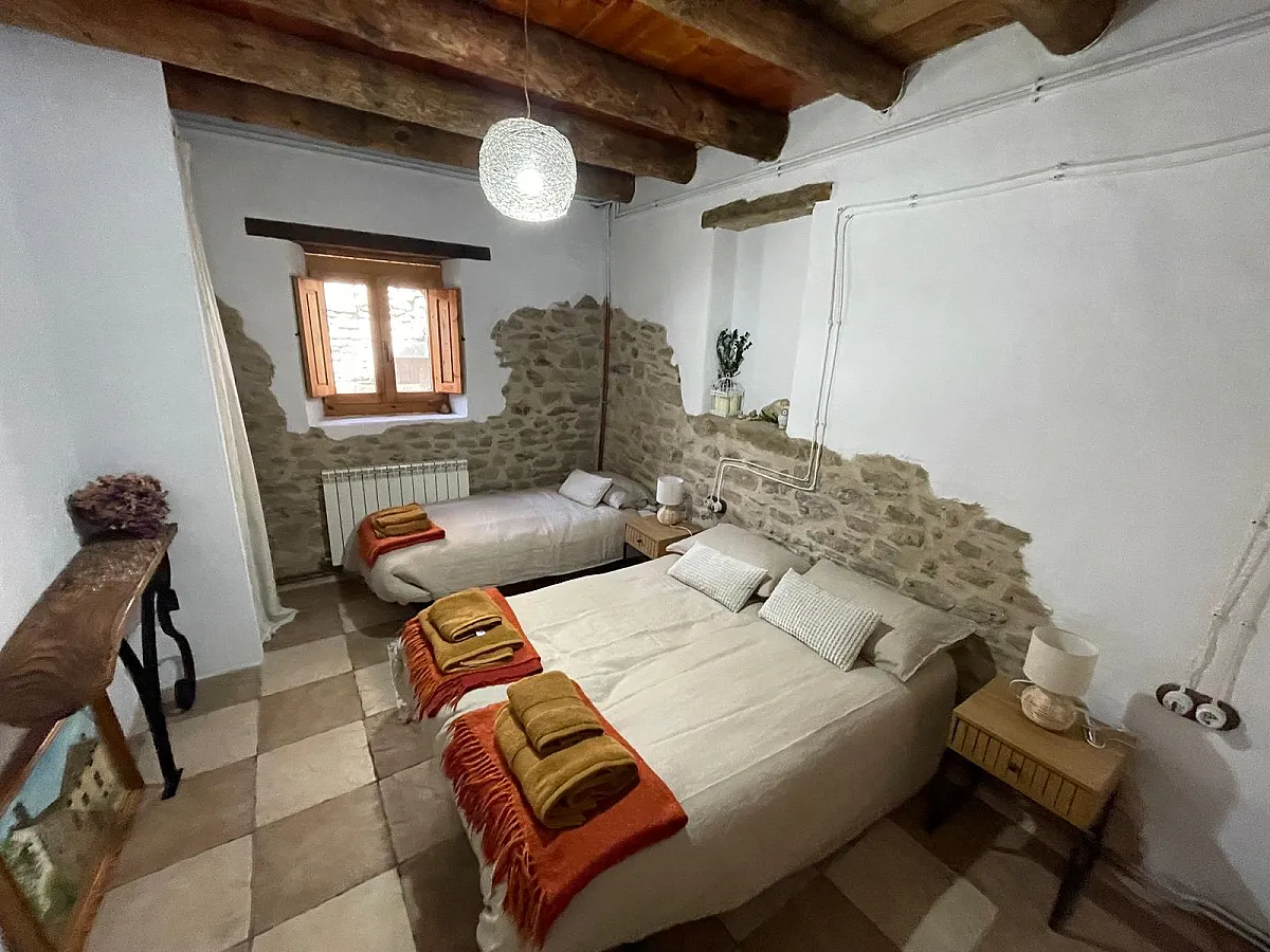 La casa cuenta con dos habitaciones, una doble y otra triple. salón-cocina y baño. Tiene todo tipo de comodidades, está completamente reformada. Podrás disfrutar del jardín, zona infantil, y bañarte en las pozas del rio Guarga, de agua limpia y transparente.