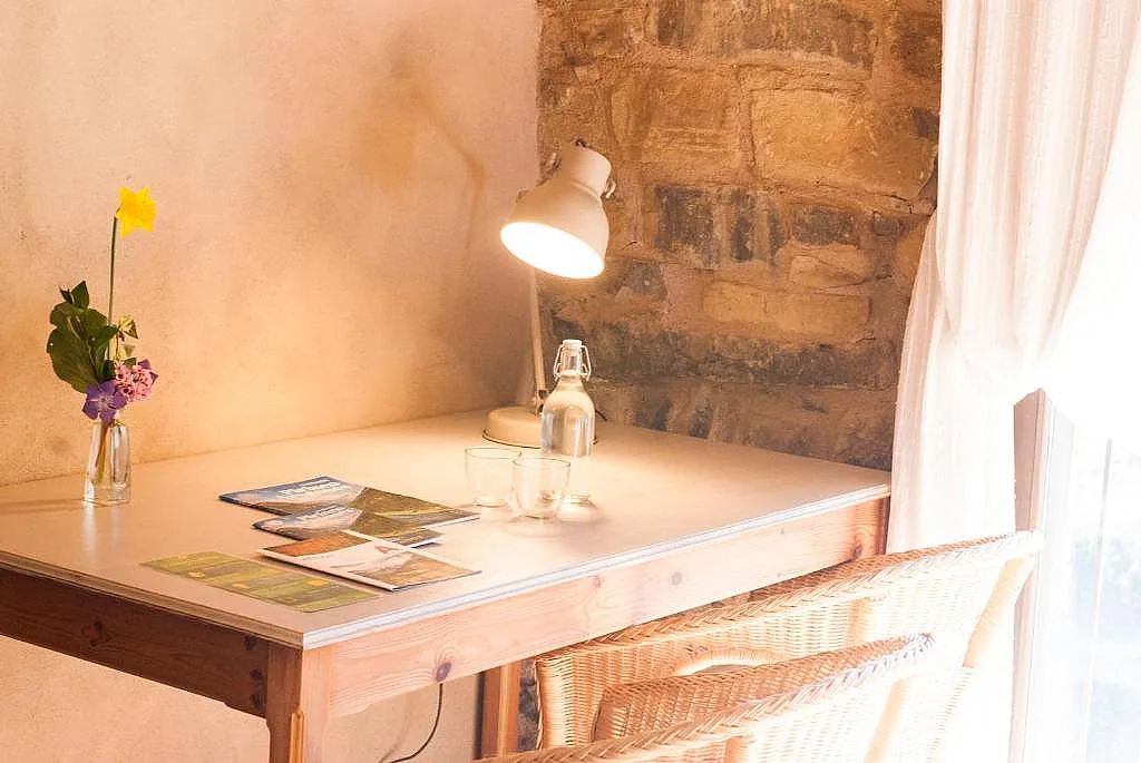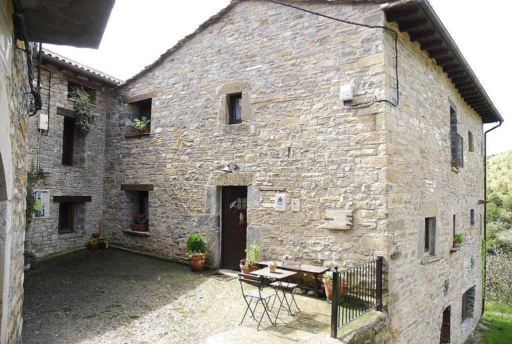 Casa de turismo rural sostenible de alquiler por habitaciones. La casa de piedra esta restaurada des del 2008 con materiales naturales y conservando su espíritu original. Acondicionada con suelo radiante, estufas de leña y buenos aislantes naturales, en la casa se respira un aire muy acogedor. No se dispone de TV para garantizar la tranquilidad de todos los huéspedes. Los desayunos y cenas se sirven en el comedor-galería, con lo que os puede sorprender alguna águila o milano.