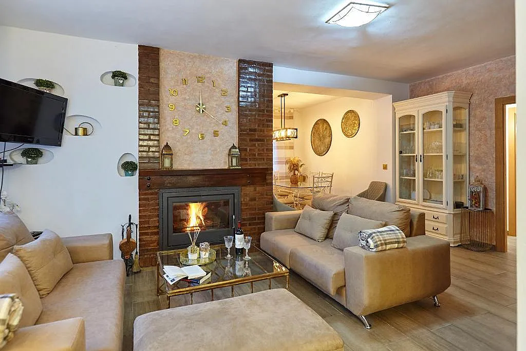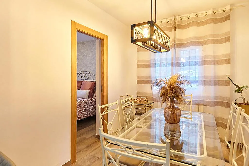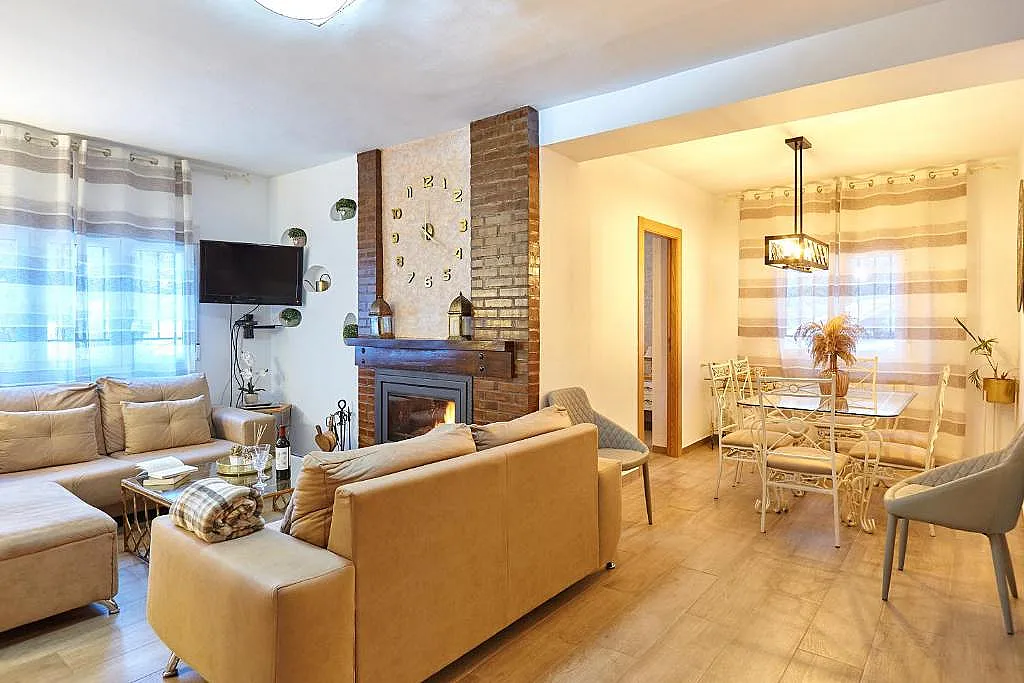 Esta casa unifamiliar cuenta con interiores totalmente equipados. Una sala de estar amplia en la que salón y comedor comparten estancia. La cocina es independiente equipada con todo lo necesario como (vitrocerámica, horno, lavavajillas, lavadora...).