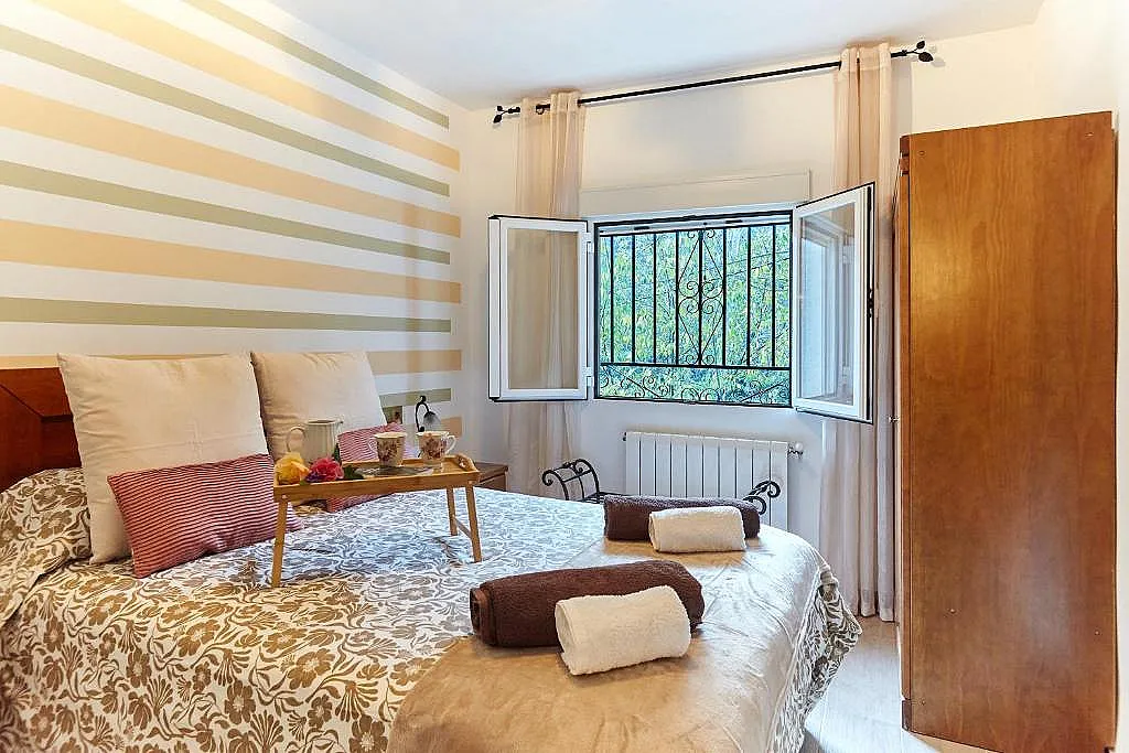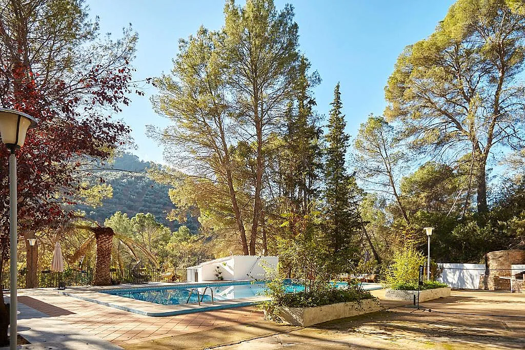 Rodeado de una naturaleza pura: el suave murmullo de las aguas del río, o el dulce piar de los pájaros en los árboles de la propia finca. En sus exteriores podréis pasar grandes momentos, por ejemplo, en la piscina.