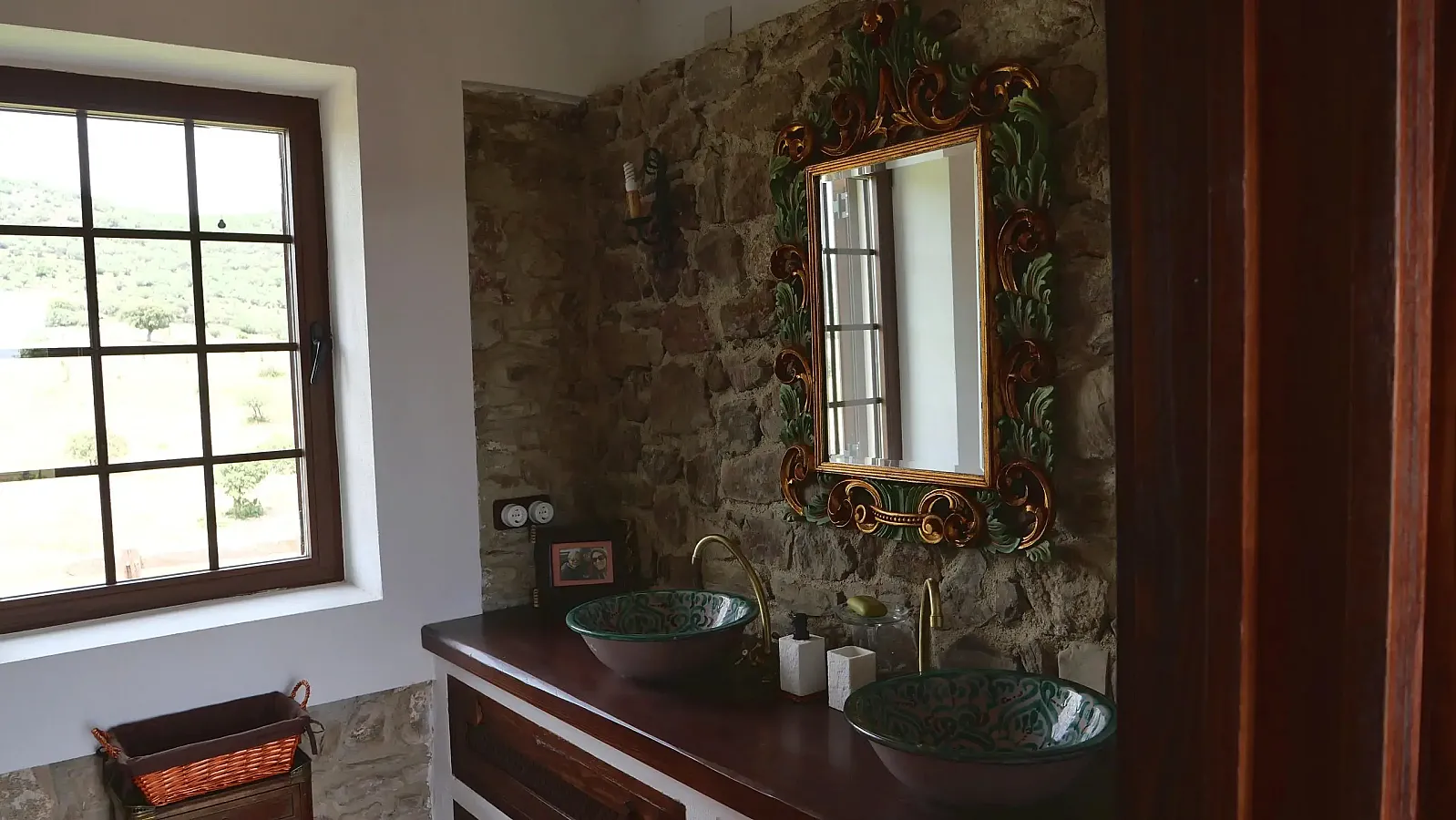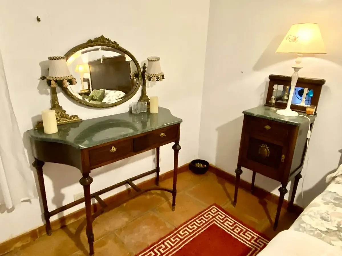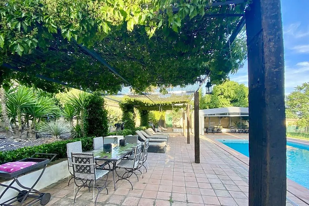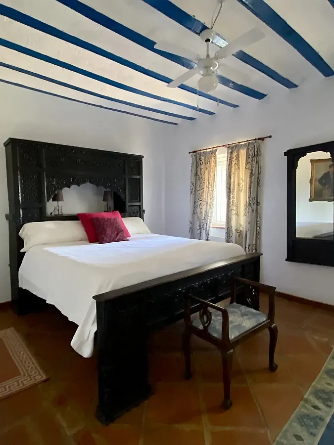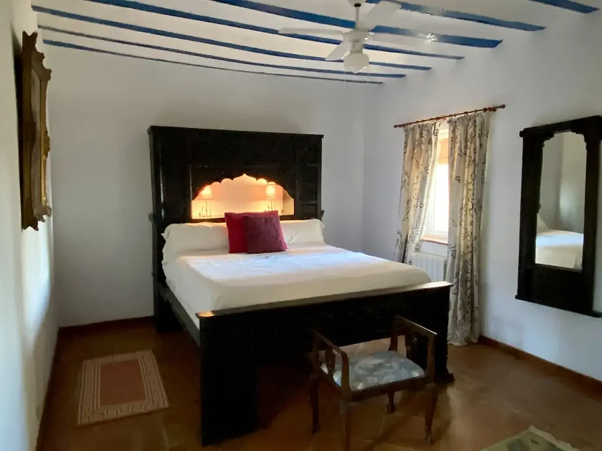 Cortijo de ensueño en el interior de Finca la Alcolehuela, rodeado de jardines de estilo Árabe y con Piscina de sal, cubierta y climatizada en los meses mas frios ( Temperatura del agua entre 25ºC y 28ºC), disponible de Marzo a Noviembre, En ella disponemos de un merendero con barbacoa y todo lo necesario( utensilios y menaje adecuado) para disfrutar en verano. El Cortijo Conta de 8 dormitorios casi todos en suite, un pequeño salón y un porche torreón con magnificas vistas. A 400m del Cortijo esta nuestra Casa Rural, situada en una pequeña loma y con vistas inigualables. Esta dispone de un dormitorio doble, baño y un salón de 100m2 con 3 ambientes, comedor-cocina, y salón con chimenea. Dispone de barbacoa, Rosco para paellas, menaje completo.. Todas las estancias con AC.