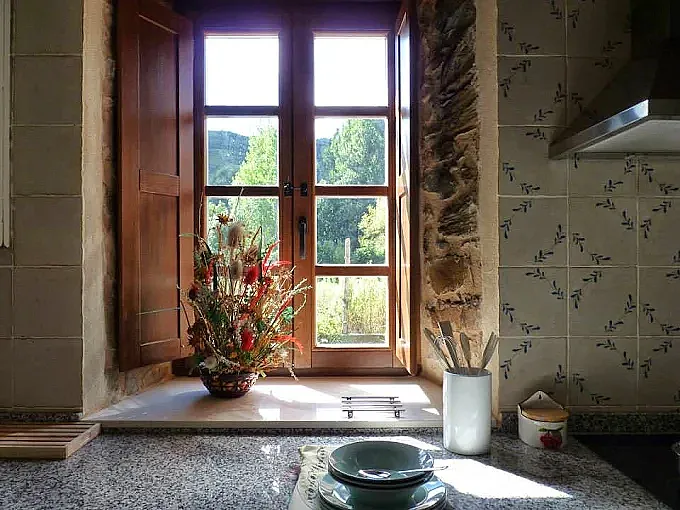 La vivienda mantiene elementos originales como las robustas paredes de piedra y vigas de madera, que se mezclan con detalles actuales y una decoración de inspiración provenzal.