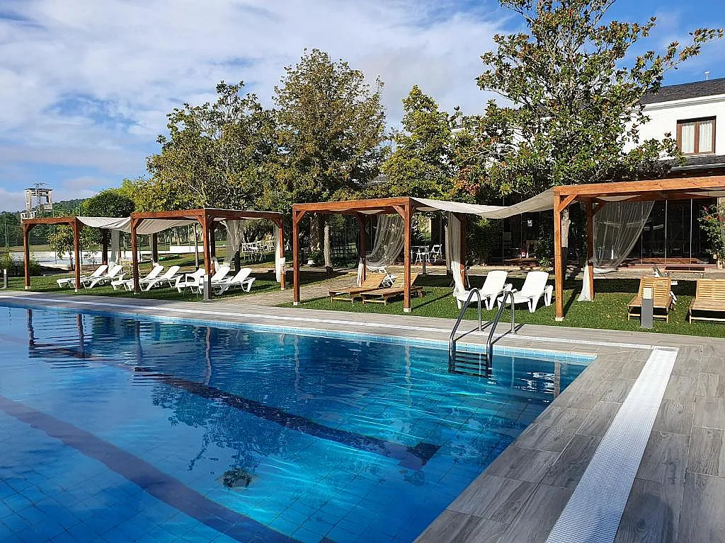 El hotel dispone de piscina para huéspedes y de un restaurante propio donde se sirve una cocina cuidada, pensada para complementar la experiencia de relax y naturaleza que ofrece el entorno. Su ambiente es tranquilo y orientado al descanso, con espacios diseñados para desconectar del ritmo diario.