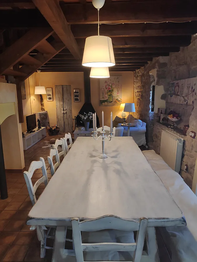 La casa dispone de 480m² de uso exclusivo y tiene todas las comodidades. Cuenta con 6 habitaciones (5 con cama doble y una con dos camas), 3 cuartos de baño (uno con bañera de hidromasaje), salón biblioteca con chimenea, salón comedor con chimenea, cocina abierta perfectamente equipada y una gran mesa para disfrutar de largas sobremesas. Es un lugar perfecto para agradables comidas acompañadas de un buen fuego.