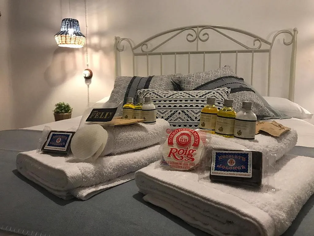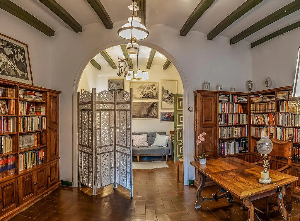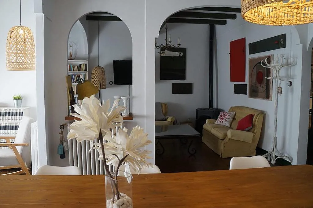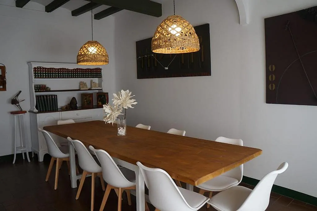 La sala-comedor destaca por su ambiente tranquilo y cultural, gracias a los libros y obras visuales del artista Guillem Viladot, antiguo propietario de la casa. Esta conexión con la historia y la creación artística aporta un carácter singular al alojamiento.