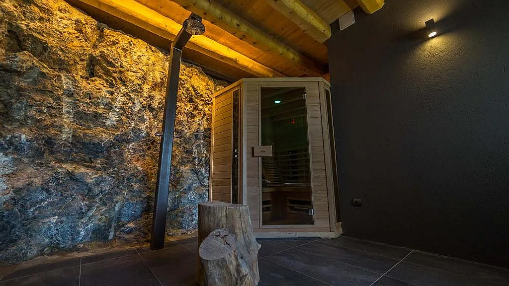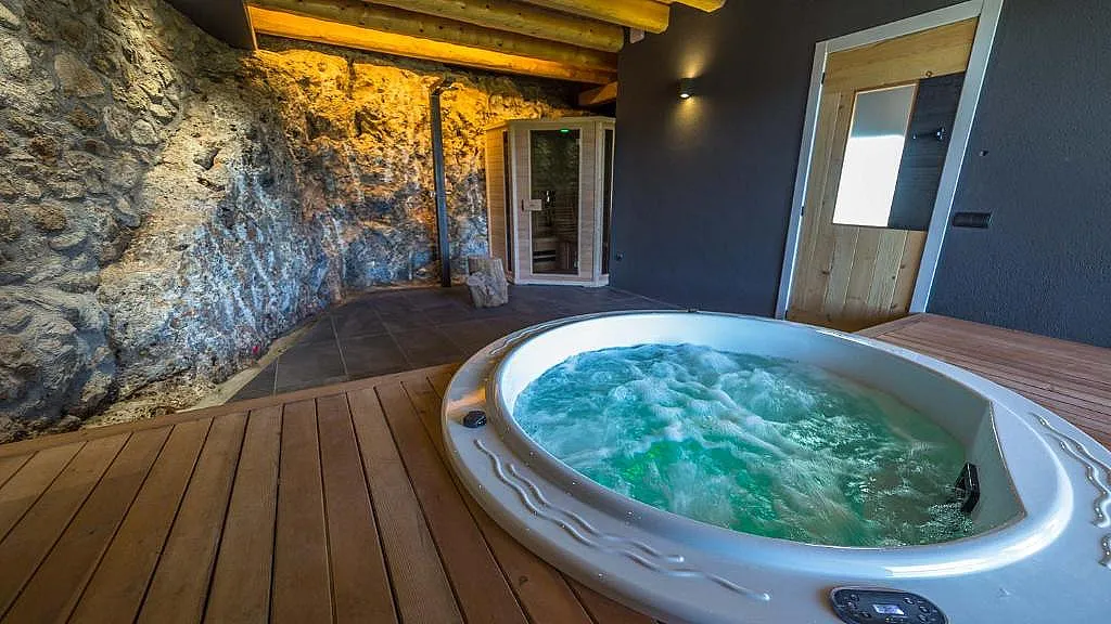 El área de spa ofrece jacuzzi, sauna y ducha, junto con un espacio de cambiador y lavabo. En el exterior se encuentra la “era”, una zona con parte abierta y parte cubierta para disfrutar del entorno en cualquier época del año.