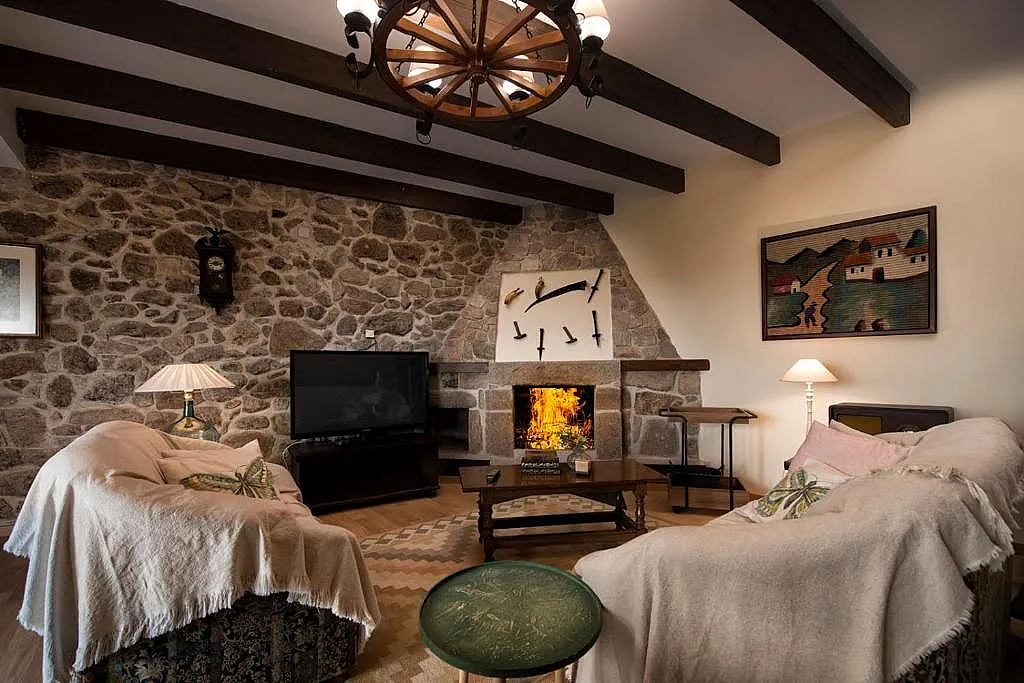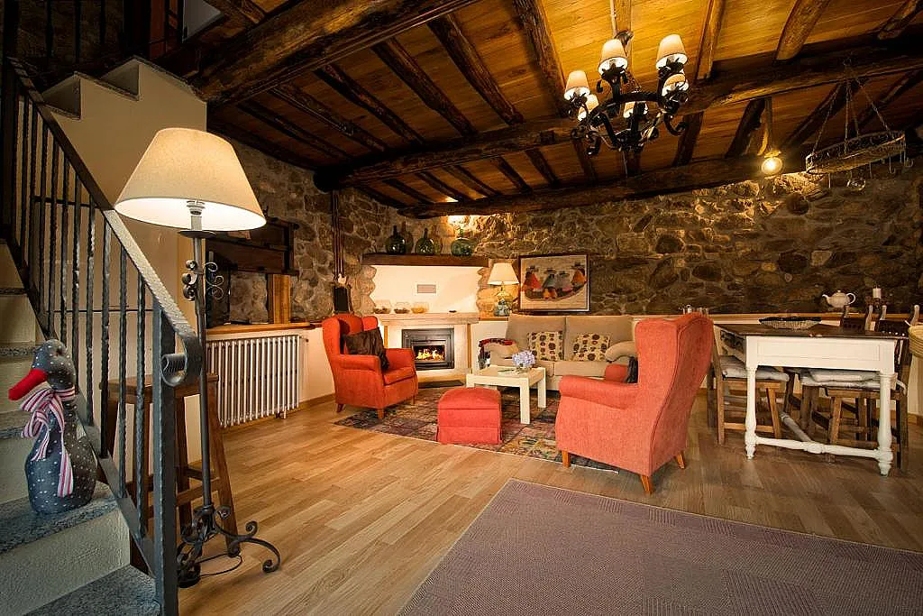 Casa Dote, con capacidad para 5 personas, se distribuye también en dos plantas. En la inferior, salón-cocina con chimenea de pellets. La planta superior alberga dos dormitorios, ambos con baño privado. Uno de ellos dispone de dos camas de 1,05 cm, sofá cama y ducha con hidromasaje, y el otro incluye cama de 1,35 cm y baño con jacuzzi.