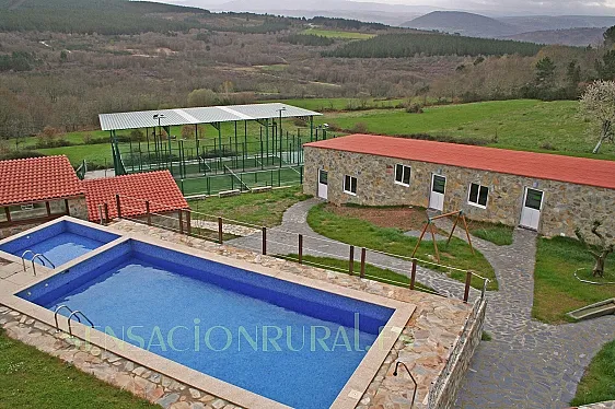 EL COMPLEJO RURAL CASA FELISA MARCELLE, CONSTA DE 1 CASA DE 7 HABITACIONES DOBLES CON BAÑO, 1 APARTAMENTO DE 3 HABITACIONES, 1 APARTAMENTO DE 2 HABITACIONES, TERRAZAS, JARDIN, SALONES, PISCINA, GIMNASIO, BARBACOA, HORNO, SALON DE JUEGOS INFANTIL, SALON DE JUEGOS DE PINPIN, BILLAR, DIANA, FUTBOLIN, BIBLIOTECA, PISTAS DE PADEL, RESTAURANTE, CABALLOS. ETC.