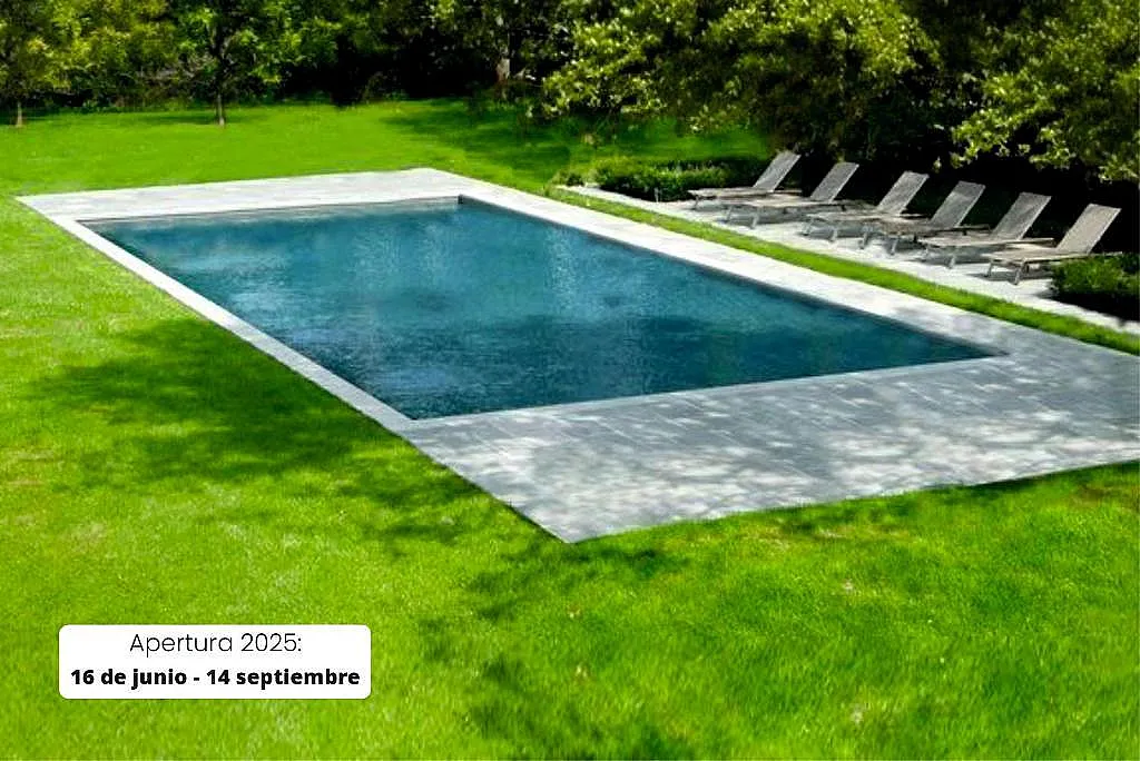 El amplio terreno del Ecocamp incluye un jardín, zona de solárium y piscina, permitiendo disfrutar del aire libre sin salir del recinto.