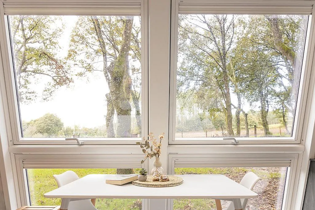 Cada cabaña está equipada con las comodidades necesarias para una estancia confortable, incluyendo grandes ventanales con vistas al paisaje gallego. Uno de los elementos más valorados es el desayuno, servido en una cesta artesanal y elaborado con productos frescos y locales que celebran la gastronomía tradicional gallega.