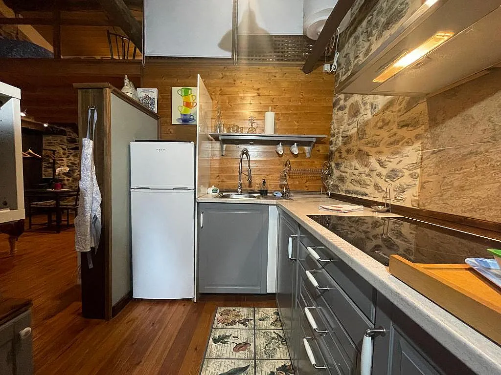 El alojamiento está distribuido en dos niveles tipo loft: en el altillo se encuentran el dormitorio y el baño con ducha, y en la planta baja, una acogedora sala de estar, comedor y cocina equipada con horno, microondas y vitrocerámica.