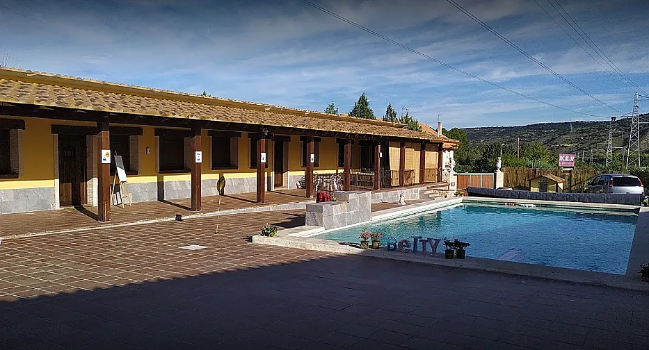 El patio central alberga una gran piscina exterior de verano, ideal para los meses más cálidos, que junto con los futbolines, el billar, el ping-pong y otros juegos de mesa refuerza el carácter lúdico del complejo.